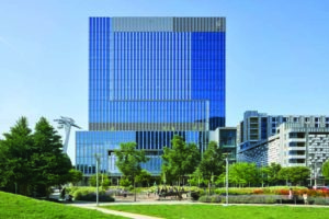 The Knight Cancer Institute, completed in May 2019, provides oncology clinics, infusion, and clinical trials on the upper six floors of the 15-story Oregon Health & Science University, Center for Health & Healing Building 2 in Portland, Ore. Designed by ZGF, the institute’s interior design reflects a patient- and family-centered care environment with private infusion bays to provide relief from noise. A mix of semiprivate and open-bay patient treatment areas maximize natural light and views, patient choice and privacy, and caregiver line of sight. To evoke feelings of comfort and stability for visiting patients and family, designers created an uplifting effect with strong vertical elements on the exterior, defined by a blue-gray glass curtain wall that mirrors the sky and surrounding buildings.
